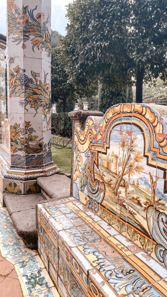 E’ il cortile interno del Monastero, adornato da maioliche, ovvero ceramiche sapientemente dipinte a mano con scene bucoliche o fantasie fiorate.